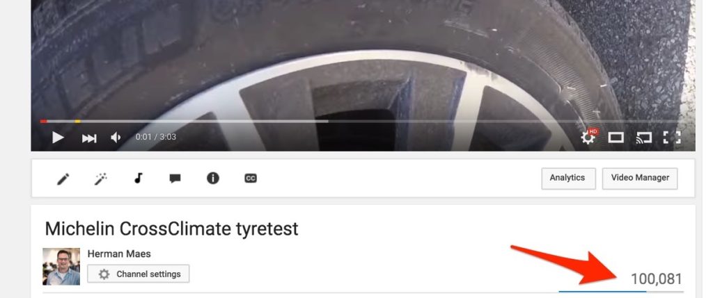 Een moeilijker bucketlist item was mijn wens om eens een stevige Youtube video te hebben, die meer dan 100.000 views zou halen. En kijk sinds dit weekend is het zover. Mijn video gemaakt tijdens een testtrip voor de Michelin CrossClimate heeft de grens nu doorbroken.